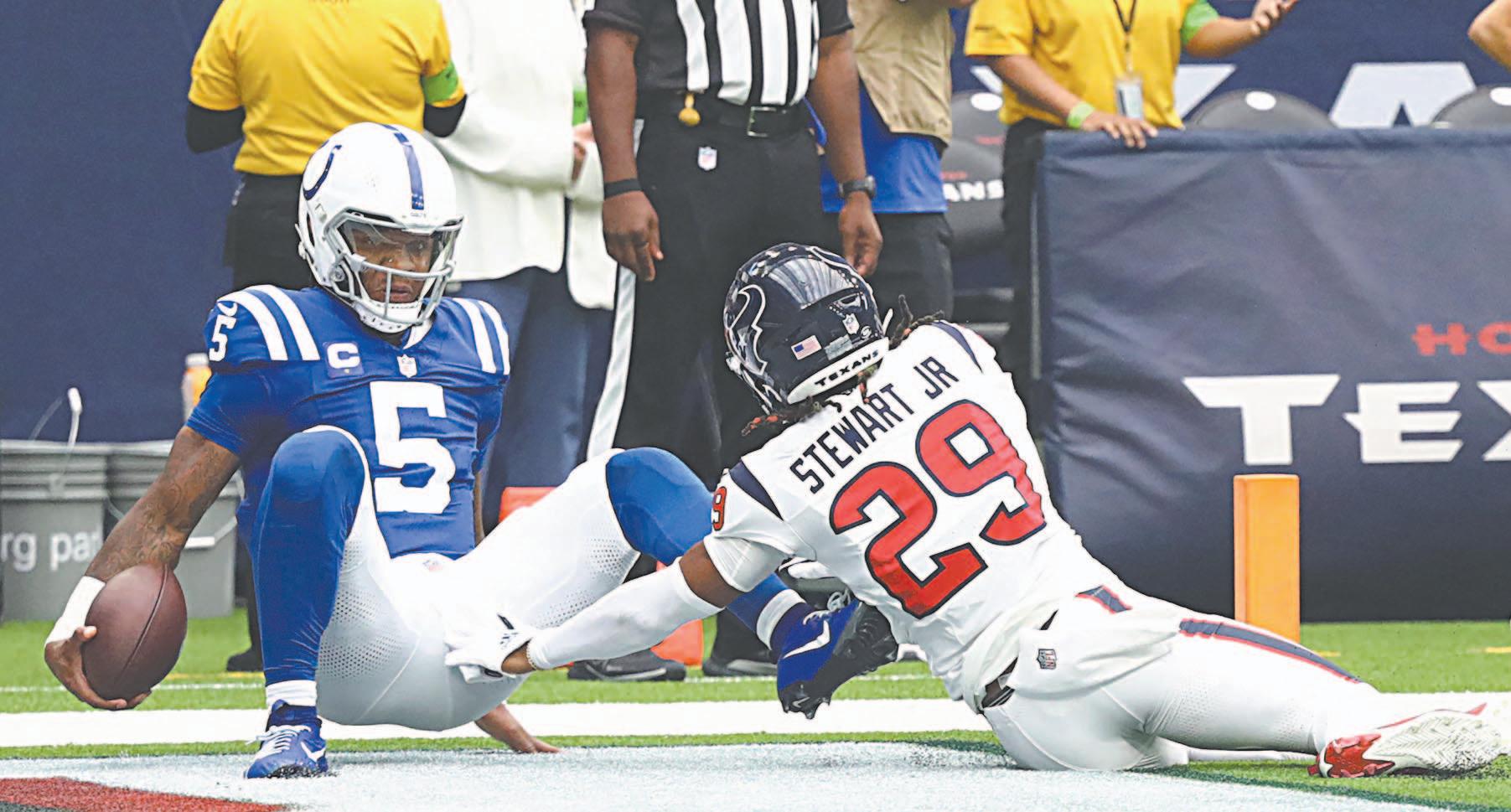 Anthony Richardson acarreó el balón para dos touchdowns antes de salir del juego por una conmoción, y Gardner Minshew lanzó para 171 yardas y una anotación para que los Colts de Indianápolis derrotaran 31-20 a los Texanos de Houston.