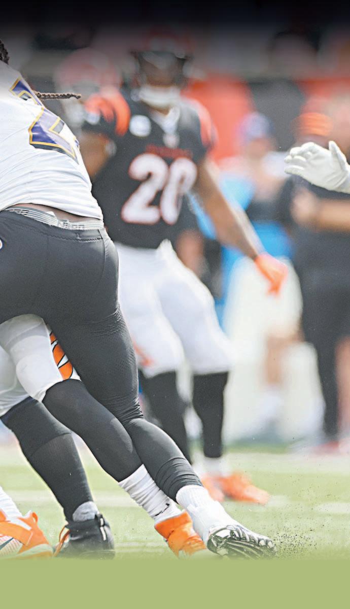 El quarterback de los Bengals, Joe Burrow, quien parece mostrar indicios de sufrir los efectos de una dolencia en la pantorrilla sufrida en la pretemporada, completó 27 de 41 pases para 222 yardas y dos pases de anotación. Apenas sumó 86 yardas en pases la semana pasada, en la derrota ante Cleveland