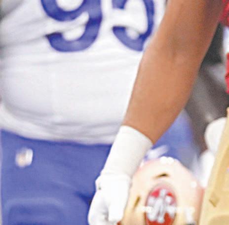 tentaba sacudirse una entrada en el tobillo. No regresó. Tampoco el guardia derecho Halapoulivaati Vaitai, quien se lesionó la pierna izquierda al comienzo del último cuarto de juego.
