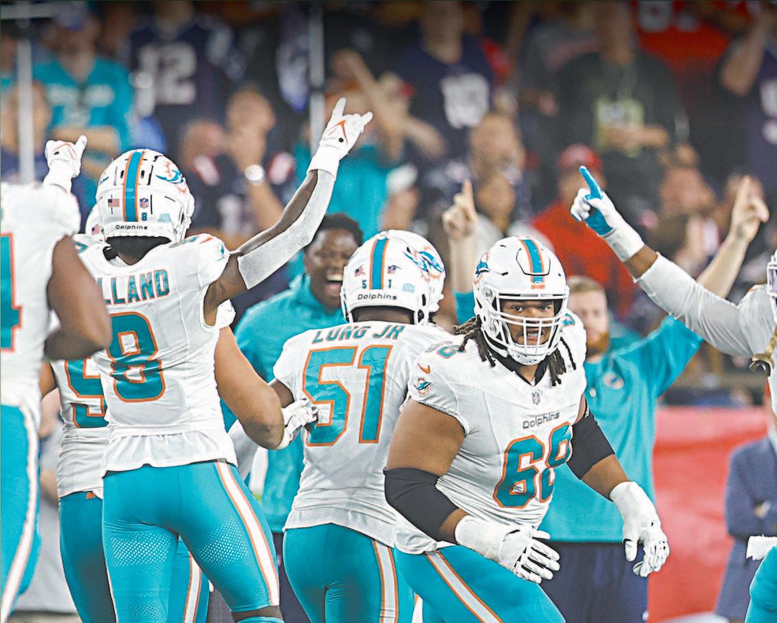Delfines de Miami tiene marca de 2-0 con dos victorias consecutivas como visitante, mientras que Patriotas de Nueva Inglaterra está 0-2 por primera vez desde 2001.