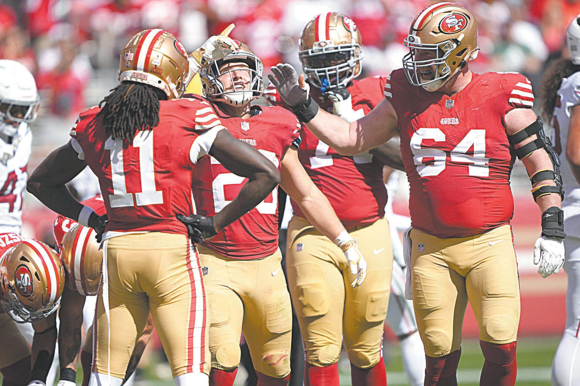terrestre y una recepción que ayudó a los 49ers a iniciar con marca de 4-0 por quinta vez en la historia de la franquicia. También rompió el récord de la franquicia de Jerry Rice al anotar un touchdown en 13 juegos consecutivos, incluidos los playoffs.