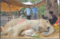 La elefanta africana, de 17 años de edad, llamada Noor Jehan, había sido sometida a exámenes por una protuberancia entre las patas traseras que le impedía caminar.