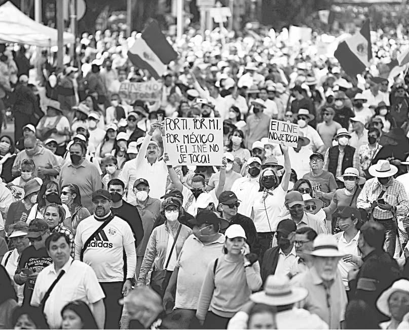 CIUDAD DE MÉXICO.- Miles de personas salieron a las calles ayer en Ciudad de México y en diversos Estados del país para realizar manifestaciones a favor de la democracia y del Instituto Nacional Electoral (INE), así como su rechazo a la iniciativa de la próxima reforma electoral.
