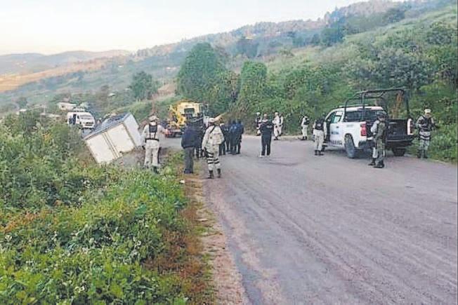 Al lugar llegaron, elementos de la Guardia Nacional, corporaciones policiacas y una grúa sacó del barranco el camión de caja seca, para ser trasladado hacia un corralón.