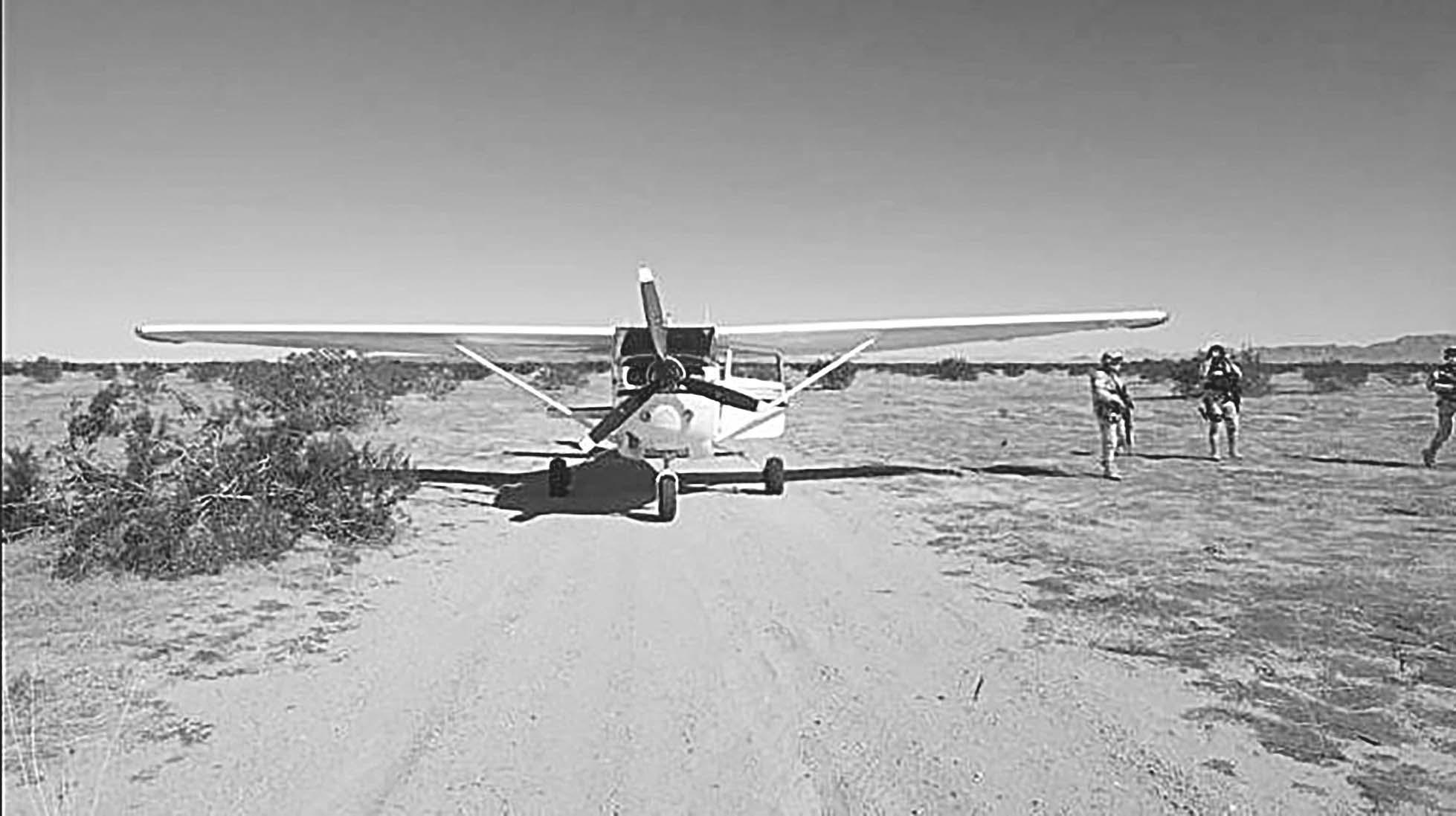 Los uniformados establecieron un perímetro de seguridad y procedieron a efectuar una revisión a la aeronave aplicando la Ley Federal de Armas de Fuego y Explosivos, detectándose que transportaban 30 paquetes con un peso aproximado de más de 300 kilogramos de posi-