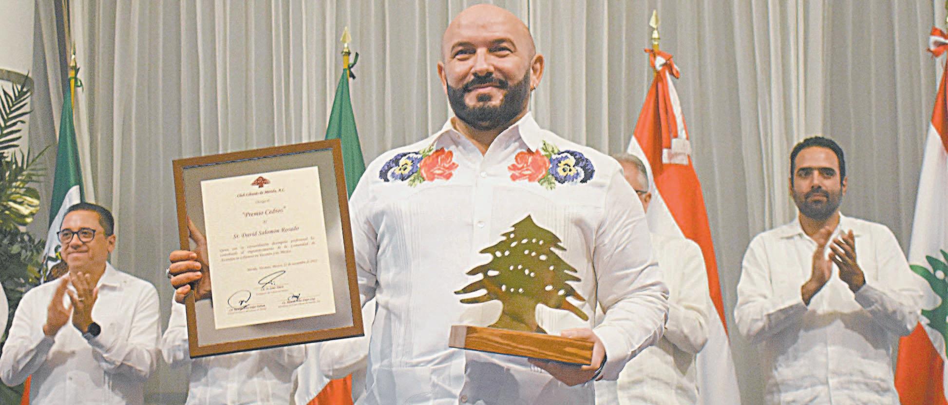 En compañía de Sami Nmeir, embajador de Líbano en México; Víctor Hugo Lozano, presidente de la Junta de Coordinación Política del Congreso del Estado, y Jorge Charruf Cáceres, presidente de la Cámara Nacional de la Industria de Transformación (Canacintra), delegación Yucatán, el Club Libanés entregó los reconocimientos: Legado Libanés, medalla Orgullo Libanés y dos Premios Cedros.