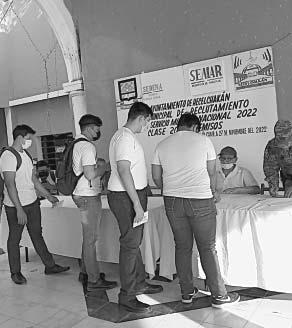 (Lorena García)Ayer por la mañana, el Ayuntamiento de Campeche en conjunto con la Secretaría de la Defensa Nacional (Sedena) y la Secretaría de Marina (Semar), hicieron el sorteo del Servicio Militar Nacional (SMN) a la Clase 2004 y remisos, donde acudieron a la cita 270 jóvenes de los dos mil 328 campechanos inscritos hasta el 31 de octubre del año en curso.