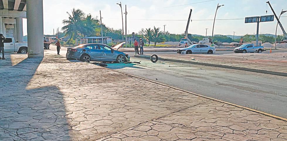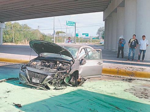 PERDER el control del volante hizo que el automóvil se impactara con el camellón central cuando viajaba desde Chiná a la ciudad capital.- (Lucio Blanco)