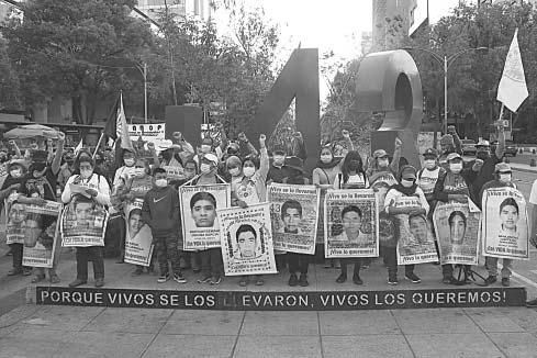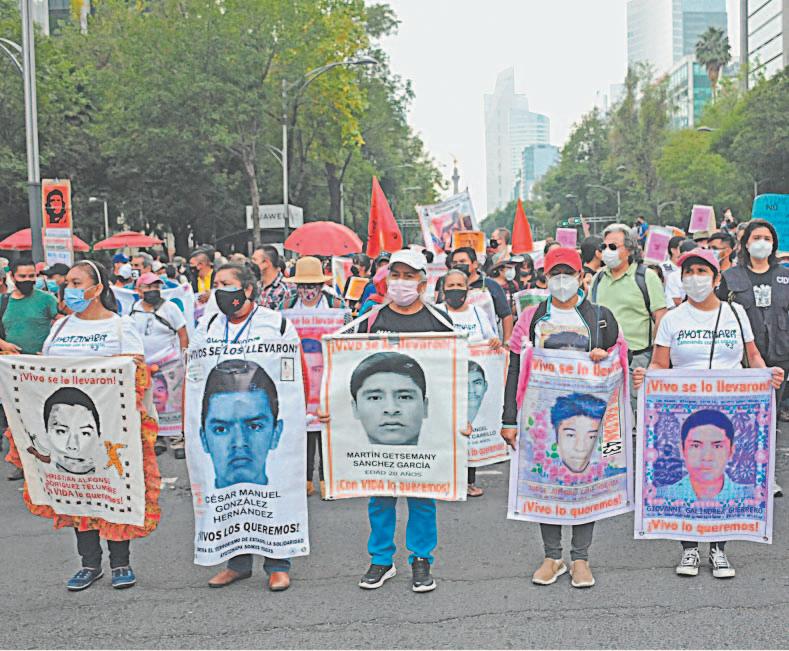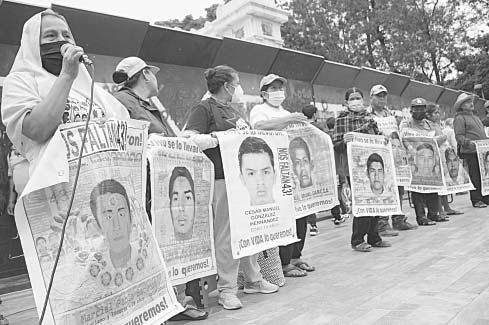 CIUDAD DE MÉXICO.- Padres y compañeros de los 43 estudiantes desaparecidos de Ayotzinapa realizaron ayer una protesta en el Centro de la Ciudad de México en la que pidieron justicia para el caso, que recientemente tuvo avances y que cumple su octavo aniversario hoy.