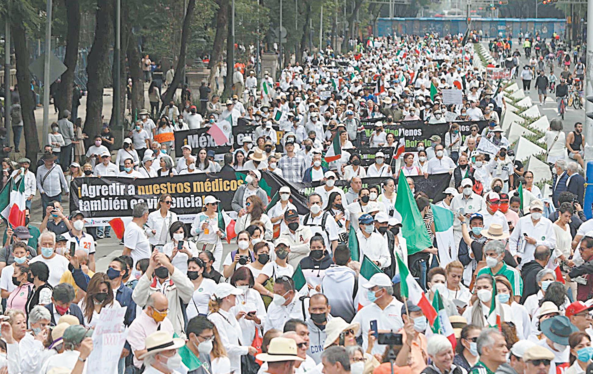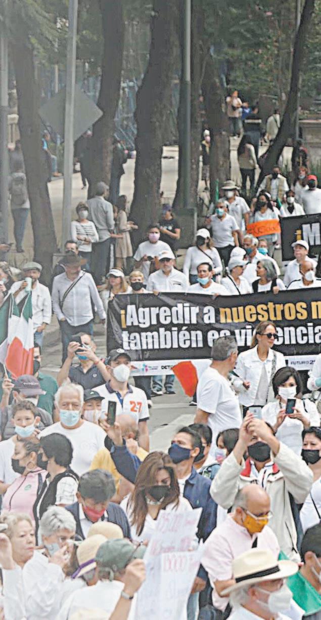 En su recorrido por Paseo de la Reforma, los manifestantes gritaban: “¡Queremos paz en el país! ¡No a la violencia!”; otros tantos, con pancartas, manifestaban su descontento por la propuesta de que las fuerzas armadas apoyen las policías civiles hasta el 2028.