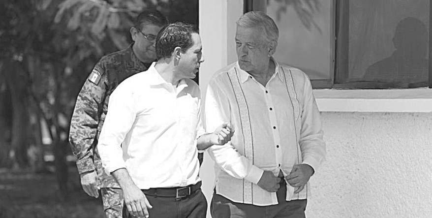 “Estamos supervisando la construcción del Tren Maya; aproveché para felicitar al gobernador saliente, Carlos Joaquín González, y a la gobernadora entrante, Mara Leza-