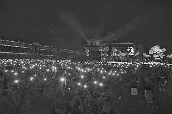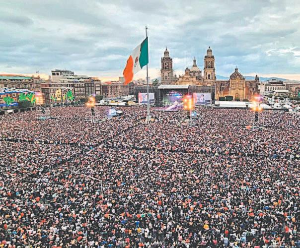 cantidad de asistentes. Por si eso fuera poco, quienes accedieron a la plancha sin ser revisados con los protocolos de seguridad continuaron saltando las secciones que dividen el Zócalo capitalino, en espera de estar lo más cerca posible del escenario.