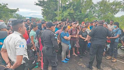 Entre los extranjeros se encontraban 15 niños y tres mujeres embarazadas, que en la madrugada de ayer se encontraban en medio de la carretera sin saber hacia dónde ir, toda vez que el personal del Instituto Nacional de Migración (INM) no acudió para rescatarlos.