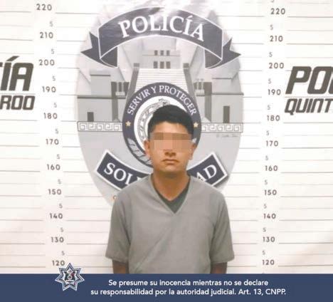 diciembre, elementos de la Po licía Municipal Preventiva, ase guraron a Efraín “N”, de 27 años de edad, originario de Chiapas, ante la posible comisión del de lito de violencia familiar, en un