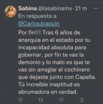 Dignidad, Identidad y Soberanía Quintana Roo Chetumal, Quintana Roo, México, domingo 25 de septiembre del 2022 Año 30 • No. 10792Directora General: Alicia Menéndez Figueroa Decepcionante Precio único: $10.00 Edición de 64 páginas en 6 Secciones con “Oportunos” Como último acto de Gobierno, entrega Carlos Joaquín el mando de la Seguridad Pública a María Elena Hermelinda Lezama, Gobernadora en funciones desde las 00:00 horas de hoy; con saldo de 3 mil 574 homicidios dolosos en su sexenio / Lucio Hernández, extitular de SSP, elogió a Manelich Castilla, quien lo sucede en el cargo, y vaticina que él “se encargará de recuperar la paz” / El exmandatario se despide en redes y ciudadanos condenan sus resultados El Estado 2, 3 y 4 Dejan 2 cuerpos sin vida en un carro, en la Región 260 de Cancún Asesinan a balazos a una persona en colonia irregular de Tulum La pobreza se incrementó en el Estado un 11.6% por ciento, de 2016 a 2022 Se activa la Alerta Azul en la Entidad, por la cercanía de la Tormenta Tropical Ian Policía Primera Sección 2 Policía Primera Sección 2 El Estado 5 El Estado 9 HASTA el último momento de su gestión gubernamental, Carlos Joaquín recibió de los quintanarroenses, en redes, el reclamo por el estado de inseguridad que vive la Entidad, que hasta el sábado sumó 440 asesinatos tan sólo en lo que va del 2022. En promedio, diario se ejecutan 1.65 homicidios dolosos, según la cifra del Secretariado Ejecutivo del Sistema Nacional de Seguridad Pública, y el conteo exclusivo de Por Esto! De ellos, 274 cometidos en Cancún. Ayer, a puerta cerrada, se hizo el relevo protocolario en la instancia más importante para la administración y la de mayor preocupación para el pueblo. (POR ESTO!) Así lo despiden 440 homicidios en los primeros 267 días del año 274 asesinatos registrados en Cancún, en el 2022 3 Mil 574 decesos contabilizados en su Gobierno 1.65 homicidios al día,en promedio 3 muertes violentas ocurridas ayer Casos sin resolver Blue Parrot balacera en 2017