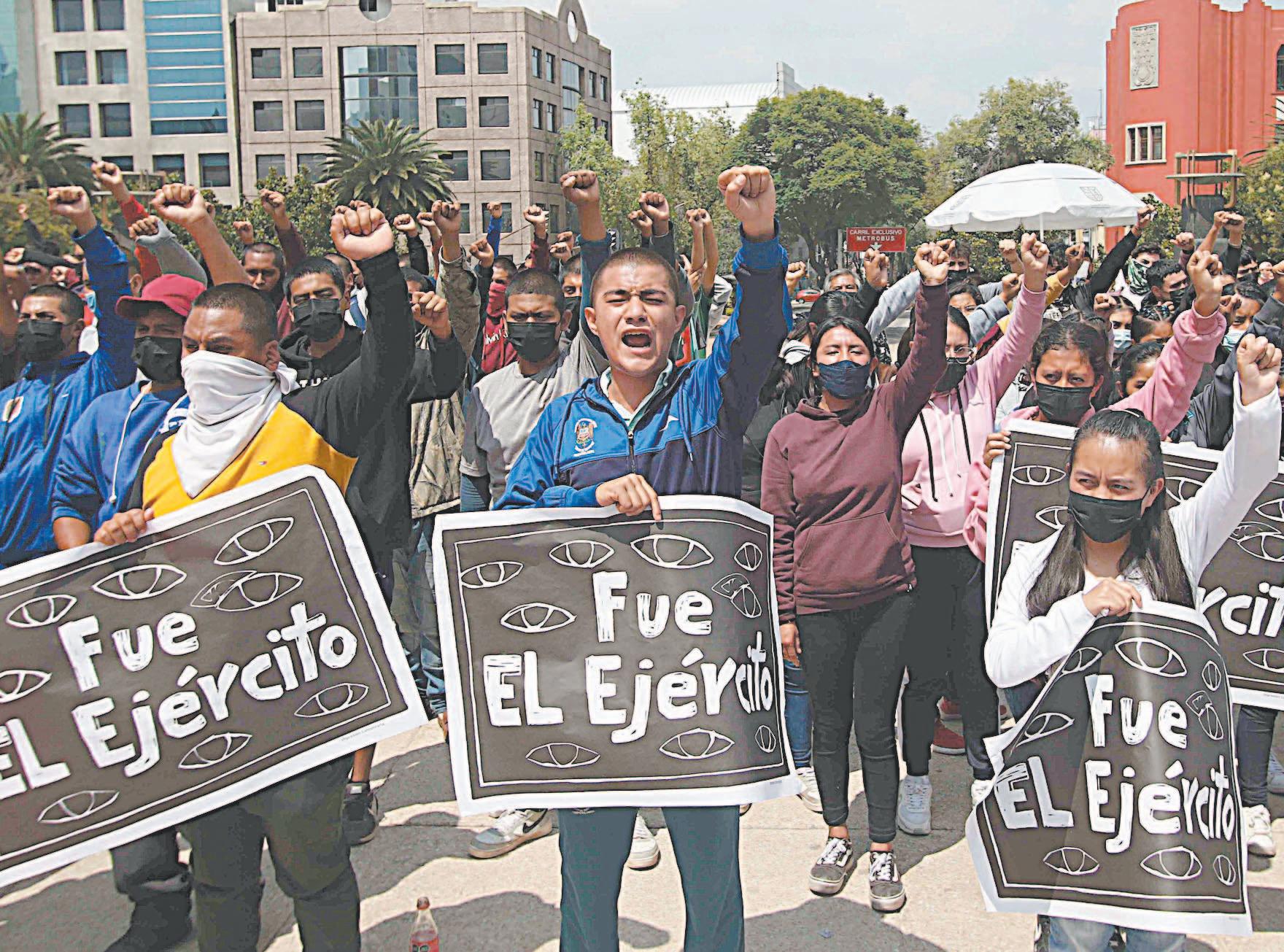 Durante esa protesta los inconformes igualmente exigían que se abran los archivos militares del caso y que se entregara a los elementos involucrados en la desaparición de los jóvenes, además de que se acabe con las desapariciones forzadas y las violaciones a los derechos humanos por parte de la dependencia castrense.