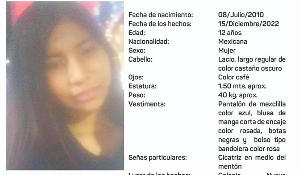 además de Shantal Guadalupe Cetzal Canché, de 15 años, en la población de Cuzamá, en el Oriente del Estado. Hasta ahora sigue el operativo de búsqueda.