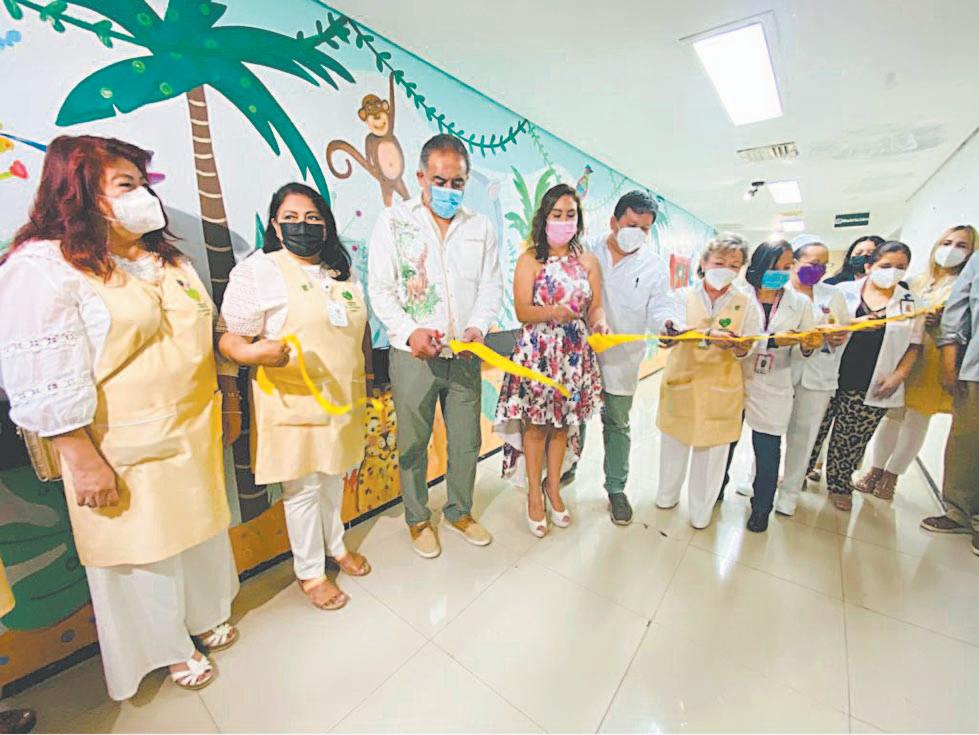 (Armando Pérez)El estado de ánimo es muy importante durante la instancia de una persona en un centro de salud, especialmente si se trata de menores de edad. Por este motivo, el voluntariado del Instituto Mexicano del Seguro Social (IMSS) de Yucatán, de manera conjunta con el artista plástico Juan Octavio Peniche, dotaron de imágenes alegres y cálidas al área de Pediatría del Hospital General Regional No.1, “Lic. Ignacio García Téllez”.