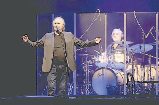 Vestido con un saco negro y entre una lluvia constante, Serrat repasó por más de dos horas más de 20 temas de su extenso repertorio, entre ellas clásicos como “Mediterráneo”,