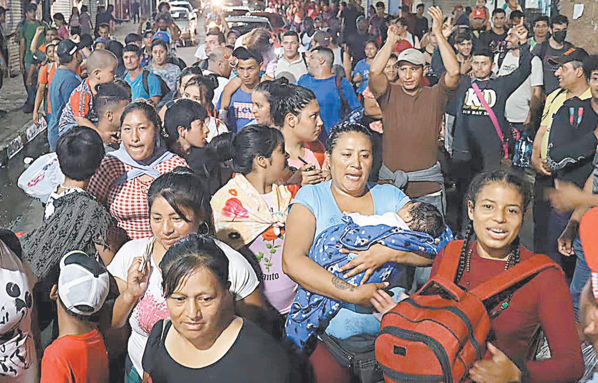 Los migrantes, que se mantenían en la plaza de Tapachula, en la frontera de México con Guatemala, salieron en caravana para exigir a Estados Unidos que revoque la expansión del Título 42 que expulsa de forma inmediata a venezolanos que llegan por tierra a ese país.
