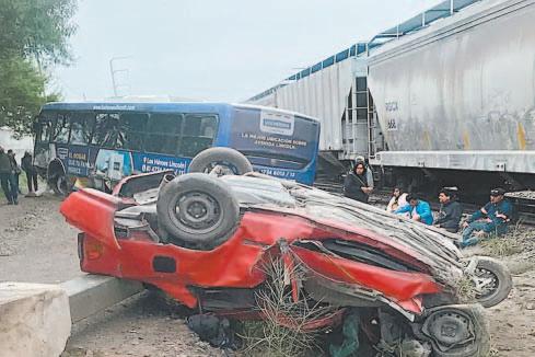 La víctima mortal quedó prensada dentro del vehículo, mientras que cuatro de los pasajeros de la ruta urbana sufrieron heridas reportadas en condiciones graves de salud.