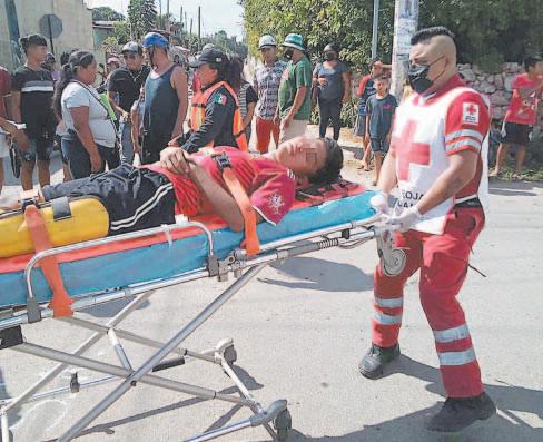 De acuerdo con los socorristas, la persona de la tercera edad sufrió probable fractura de tibia y peroné y golpes en el tobillo izquierdo, así que fue necesario trasladarlo al Seguro Social de Motul para descartar heridas mayores, aunque posteriormente fue canalizado a Mérida. El motociclista y su unidad fueron tras-