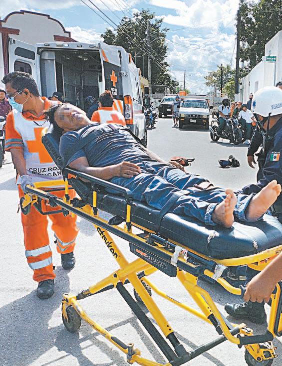 sufrió una herida de 15 centímetros de longitud debajo de la rótula, a la altura de la cabeza de la tibia, por lo que fue trasladado a la clínica del Instituto Mexicano del Seguro Social (IMSS) de Motul y posteriormente al Hospital General Agustín O’Horan de Mérida para descartar mayores heridas, los socorristas de la ambulancia 7303 de la Comisión Nacional de Emergencia (CNE) les proporcionaron los primeros auxilios a los afectados.