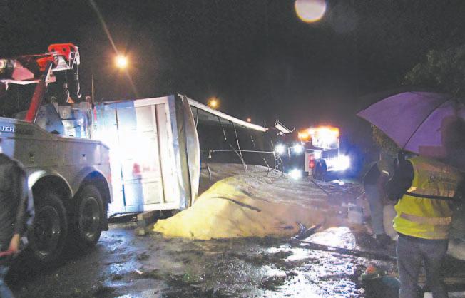 Según la versión del trailero, perdió de vista las dimensiones de la carpeta de rodamiento, la llanta delantera resbaló de la orilla, subió al camellón que divide la vía rápida de la calle lateral. Aunado a lo mojado del pavimento y la tierra suelta tierra, el neumático se hundió y eso ocasionó que que el vehículo aca-