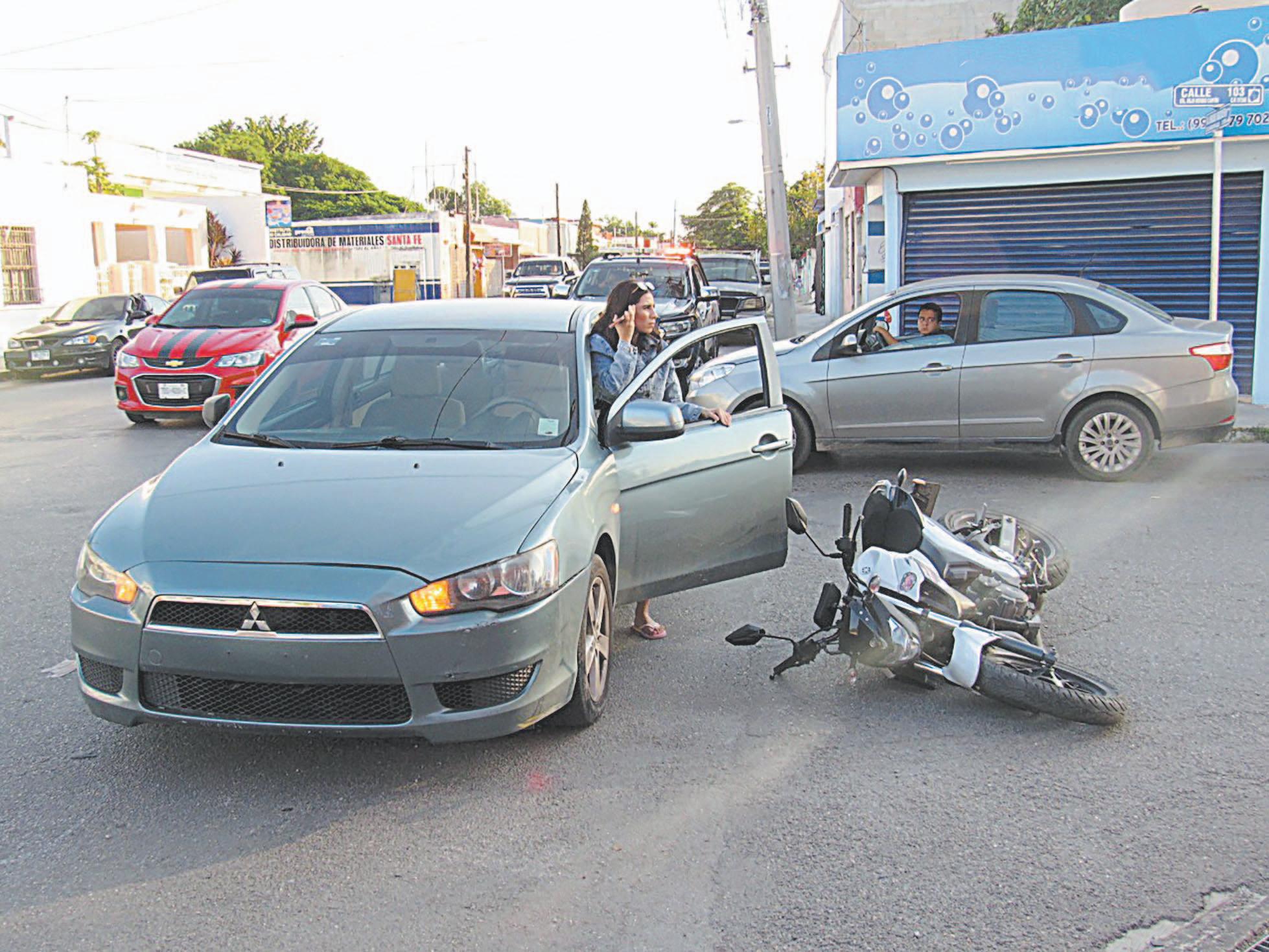 El conductor de una motocicleta resultó con golpes leves después de ser colisionado por un un automóvil, cuya guiadora le cerró el paso por esquivar una camioneta que se le atravesón en el camino. El incidente ocurrió en la avenida Armando Manzanero (calle 60), cruzamiento con la 103 de la colonia Delio Moreno Cantón , en horas de la tarde.