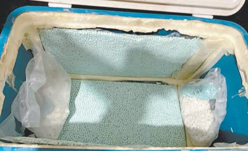 Al pasar el equipaje por el Equipo Fijo de Inspección no Instructiva de Rayos “X”, se detectó al interior de una caja de cartón una hielera que contenía en las paredes cinco bolsas con 58 mil 484 pastillas de posible fentanilo, procediendo a la detención de los dos conductores y al aseguramiento de la droga.