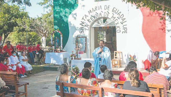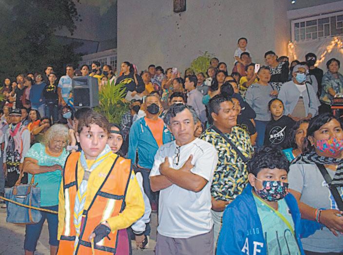Procedentes de Michoacán, Jalisco, Nueva León, Querétaro o Tlaxcala, grupos de feligreses se agolparon en la puerta de la iglesia para atender a la misa matinal, mientras el resto se desperdigaba por la plaza para estirar las horas de sueño, desayunar, rezar, bailar y cantar.