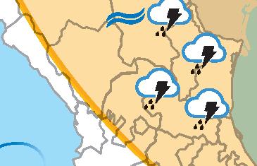las lluvias tengan descargas eléctricas y posible caída de granizo.