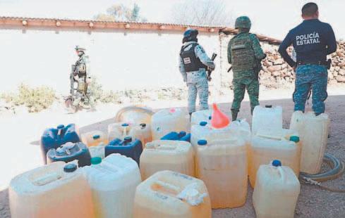 do, Comunicaciones, Cómputo, Coordinación e Inteligencia (C5i) de Hidalgo, que se localizaron dos centros de distribución de hidrocarburo y droga, ambos predios vinculados a E.O.T., en donde se aseguró combustible presuntamente de procedencia ilícita, hierba seca con características previas de la marihuana y sustancia granulada con las características de droga sintética (cristal).