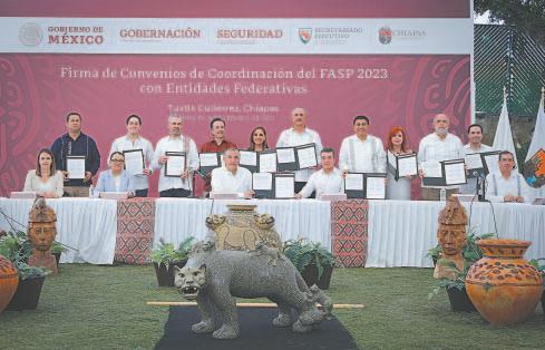 El Gobierno de México firmó ayer convenios de coordinación del Fondo de Aportaciones para la Seguridad Pública (FASP) 2023 con 10 Entidades del país, con el fin de atender las zonas con mayor incidencia delictiva.