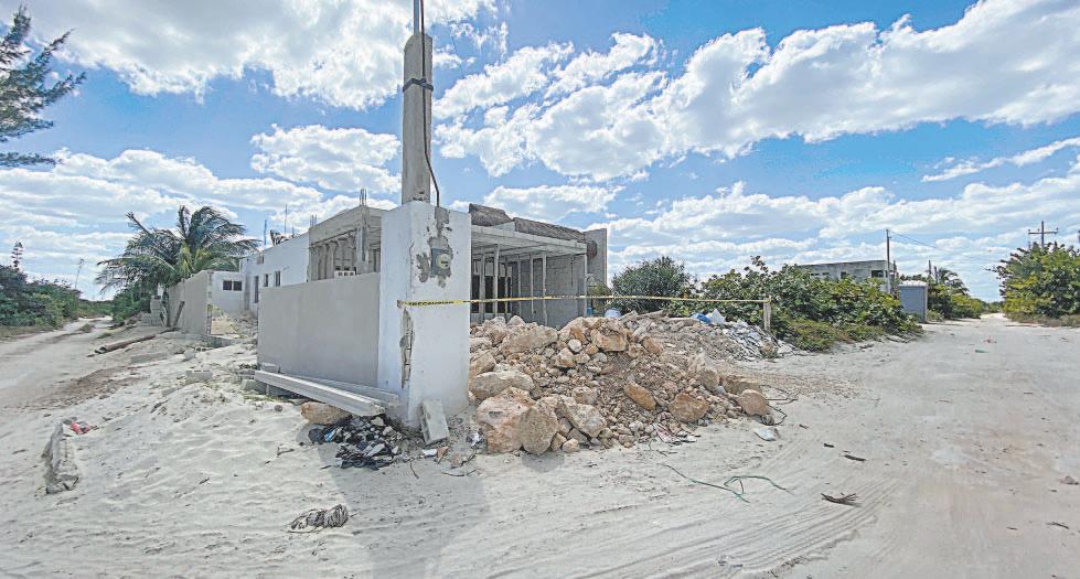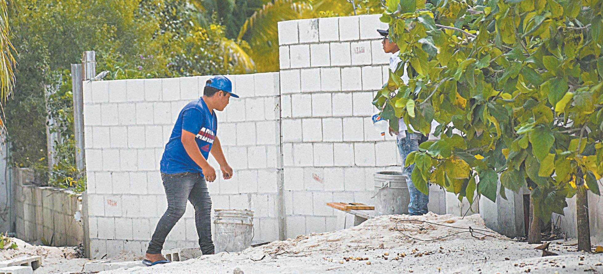 ENTRE quejas de los habitantes de la zona, avanza la edificación de un muro que bloquea un espacio de tránsito comunitario; el edil dzemuleño evitó recibir a los inconformes porque estaba de vacaciones en Europa junto con su esposa. “Suponemos que con el pago que recibió por los terrenos pudo viajar a ese continente”, afirman.- (Diana Várguez)