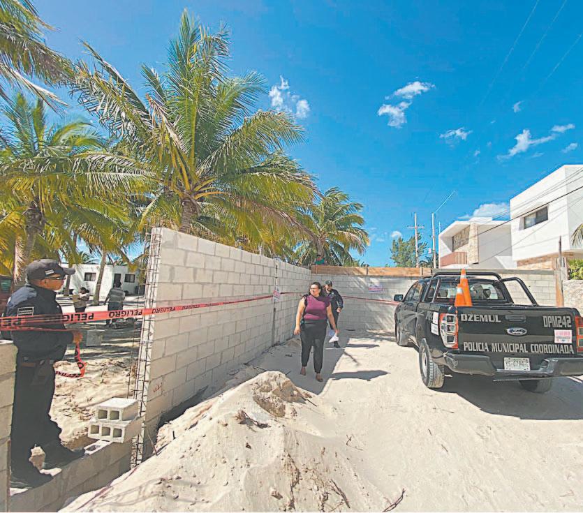 POLICÍAS municipales y personal de Inspección y Sanción de la Costa frenaron la edificación de la barda; a pesar de estar en una zona federal, NO se presentó personal de la Secretaría del Medio Ambiente y Recursos Naturales ni de la Procuraduría Federal de Protección al Ambiente.- (POR ESTO!)