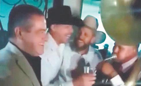 Según las imágenes, el Alcalde se encontraba alcoholizado mientras sostenía un vaso con algún licor en la mano. Junto a él había dos hombres más, quienes cantaban con él frente