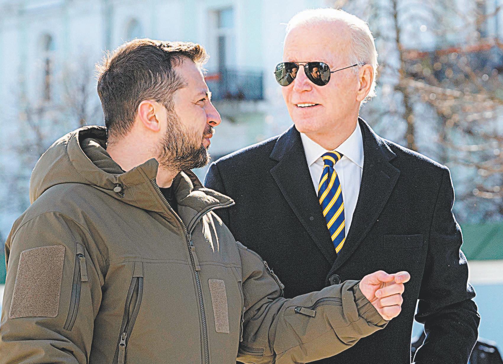 JUNTO a su homólogo ucraniano, Volodimir Zelenski, el Mandatario estadounidense anunció que entregará a Kiev 500 millones de dólares de ayuda suplementaria.- (AFP)