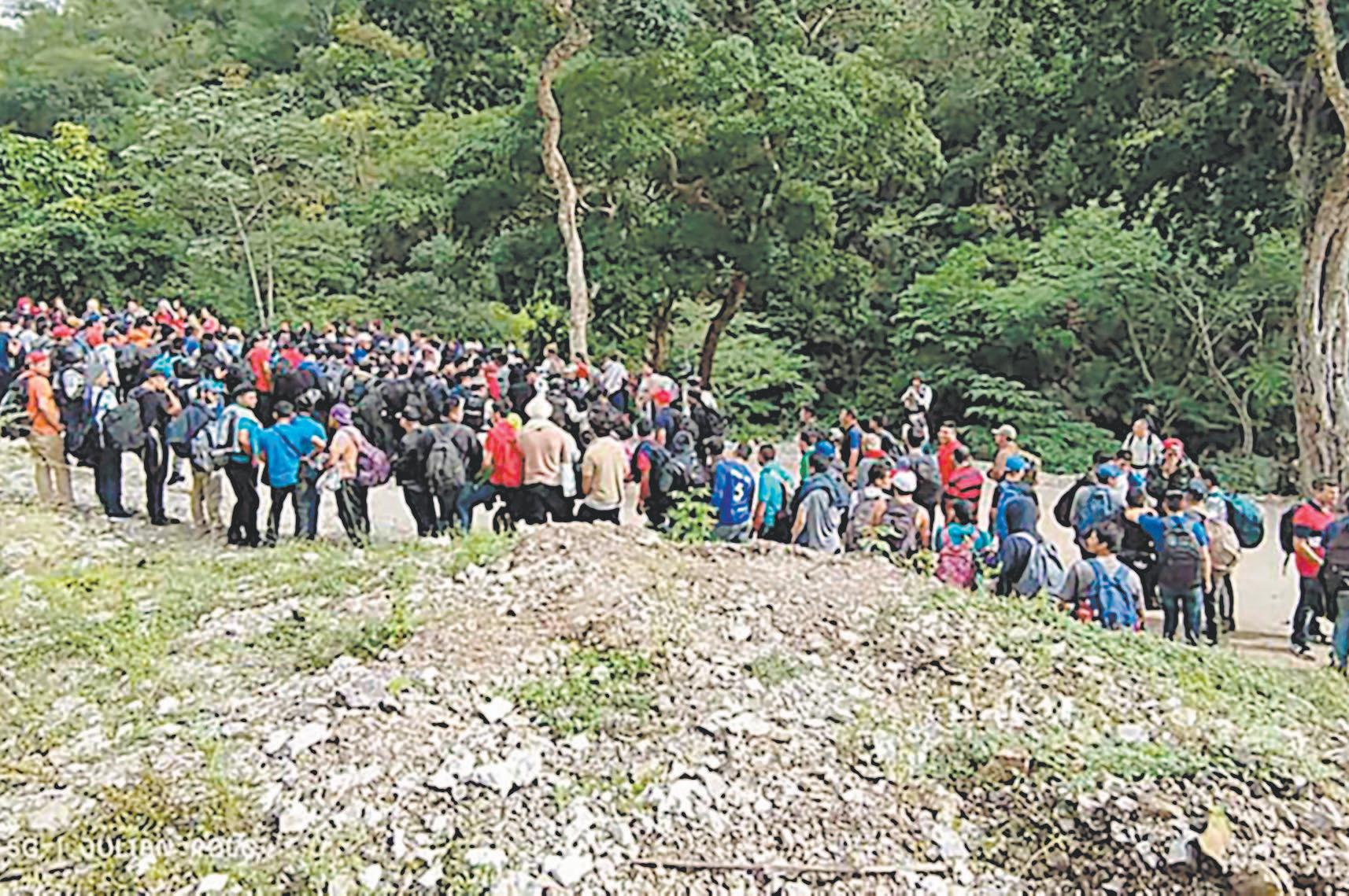 El contingente de personas caminaba sobre la carretera cuando los pobladores se percataron y avisaron a las autoridades, para evitar que fueran víctimas de la delincuencia.