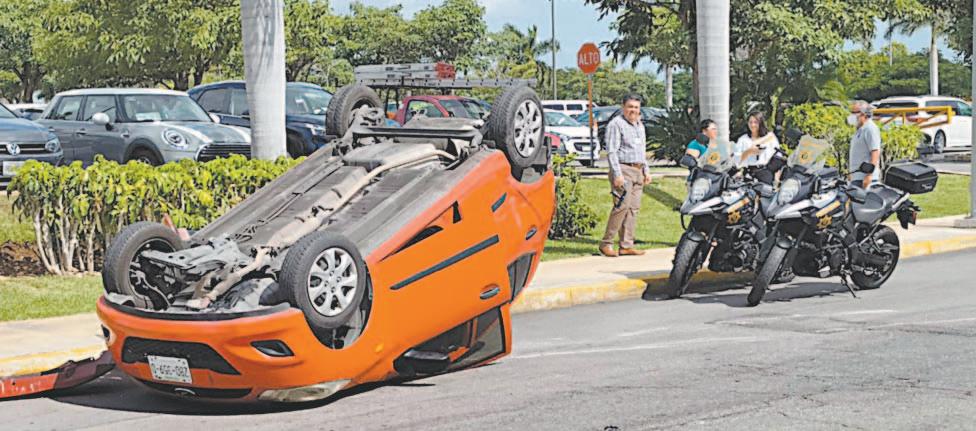 Una persona que salía del estacionamiento de un centro comercial en el Norte ocasionó un percance vial en el que otro automóvil quedó volcado, ayer por la mañana.