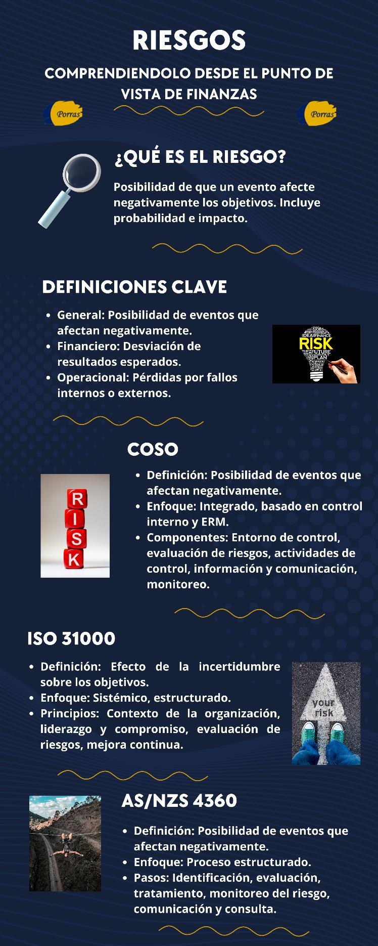 Comprender la definición de riesgo en el contexto financiero y su relevancia en la toma de decisiones estratégicas. Analizar diferentes enfoques y estándares para una visión integral del riesgo.