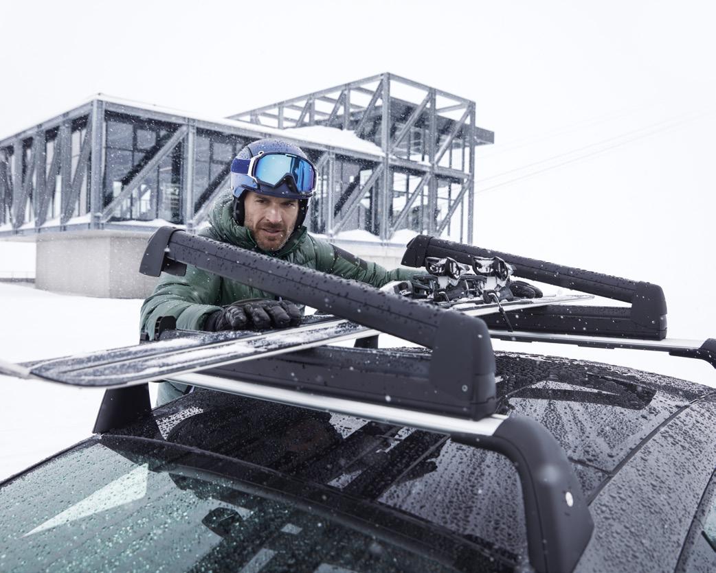 Ski- und Snowboardhalter mit „PORSCHE“ Schriftzug für den sicheren Transport von bis zu 5 Paar Ski oder 2 Snowboards. Dank großer Tasten lässt sich der Träger auch mit Handschuhen öffnen und schließen. Dabei ermöglicht die Ausziehfunktion ein komfortables Auf- und Abladen, ohne sich über das Fahrzeugdach lehnen zu müssen.