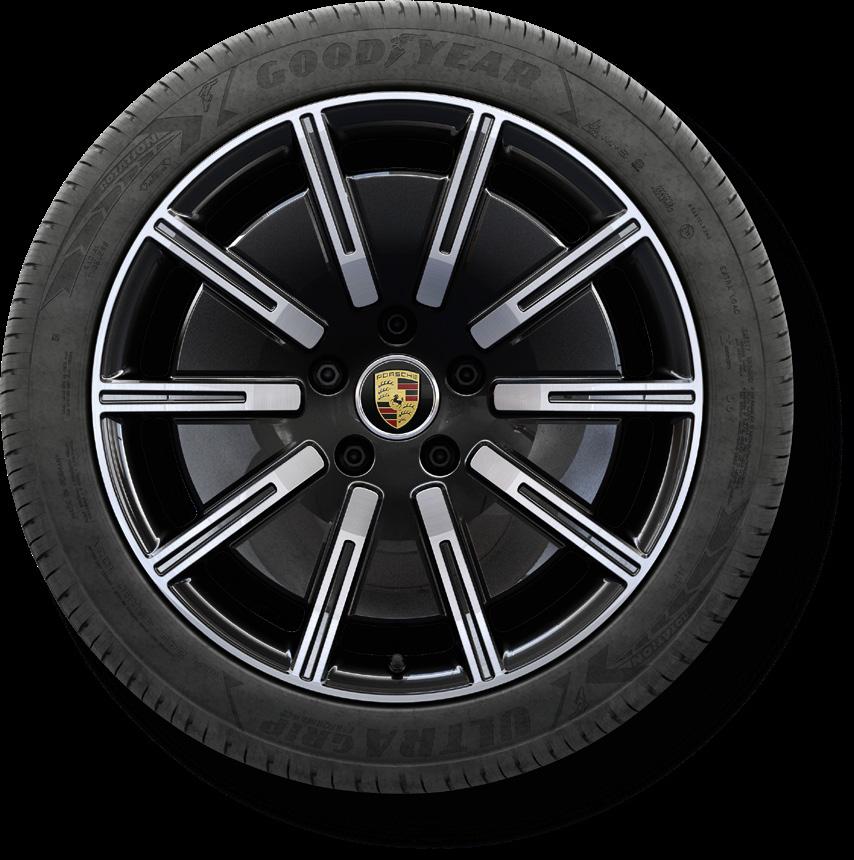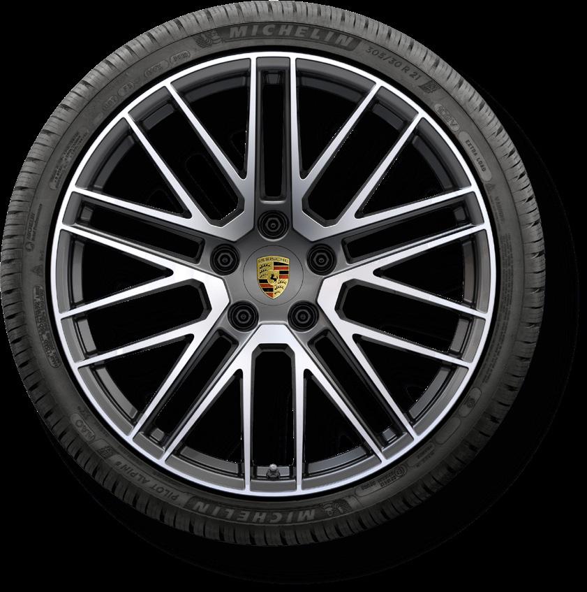 Leichtmetallräder in filigranem 5-Speichen-Design mit Doppelspeichen. Nicht in Verbindung mit Porsche Ceramic Composite Brake (PCCB).