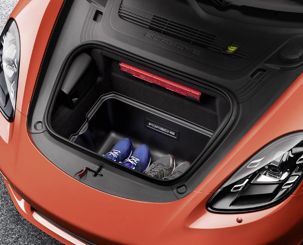 Die innovative Porsche Performance-Dachbox, mit einem Volumen von 480 Litern wurde im Entwicklungszentrum in Weissach entwickelt. Für folgende Modelle ist die Porsche Performance-Dachbox für Geschwindigkeiten bis 200 km/h geprüft: Taycan (J1, J1 II), Cayenne (E3, E3 II), Macan (II, III, H2), Panamera (G2, G2 II, G3)