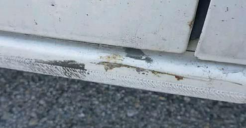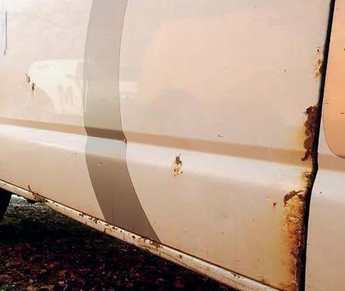 Vopsea mată, corodată sau revopsire nesatisfăcătoare. Reparaţii necesare. Pete de rugină, avarii de la impactul cu pietre.