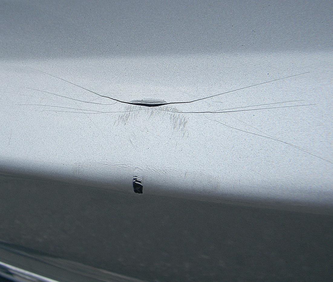 Urme lăsate de pietre, minore Posibilitatea de remediere prin reaplicarea primului strat de vopsea sau prin aplicarea unui strat de lac protector; nu mai mult decat impactul unei pietre, cu o suprafață de 10 cm2 (dimensiunea palmei)