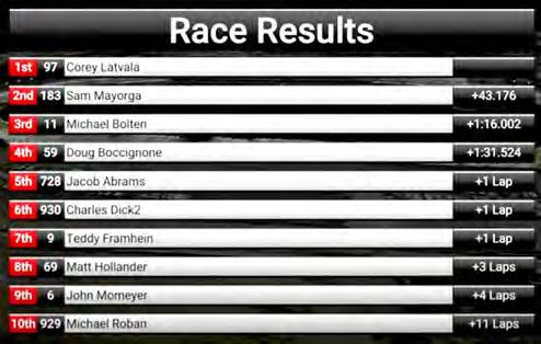 1st Corey Latvala 4th Doug Boccignone 2nd Sam Mayorga 5th Jacob Abrams 3rd Michael Bolten 6th Charles Dick2