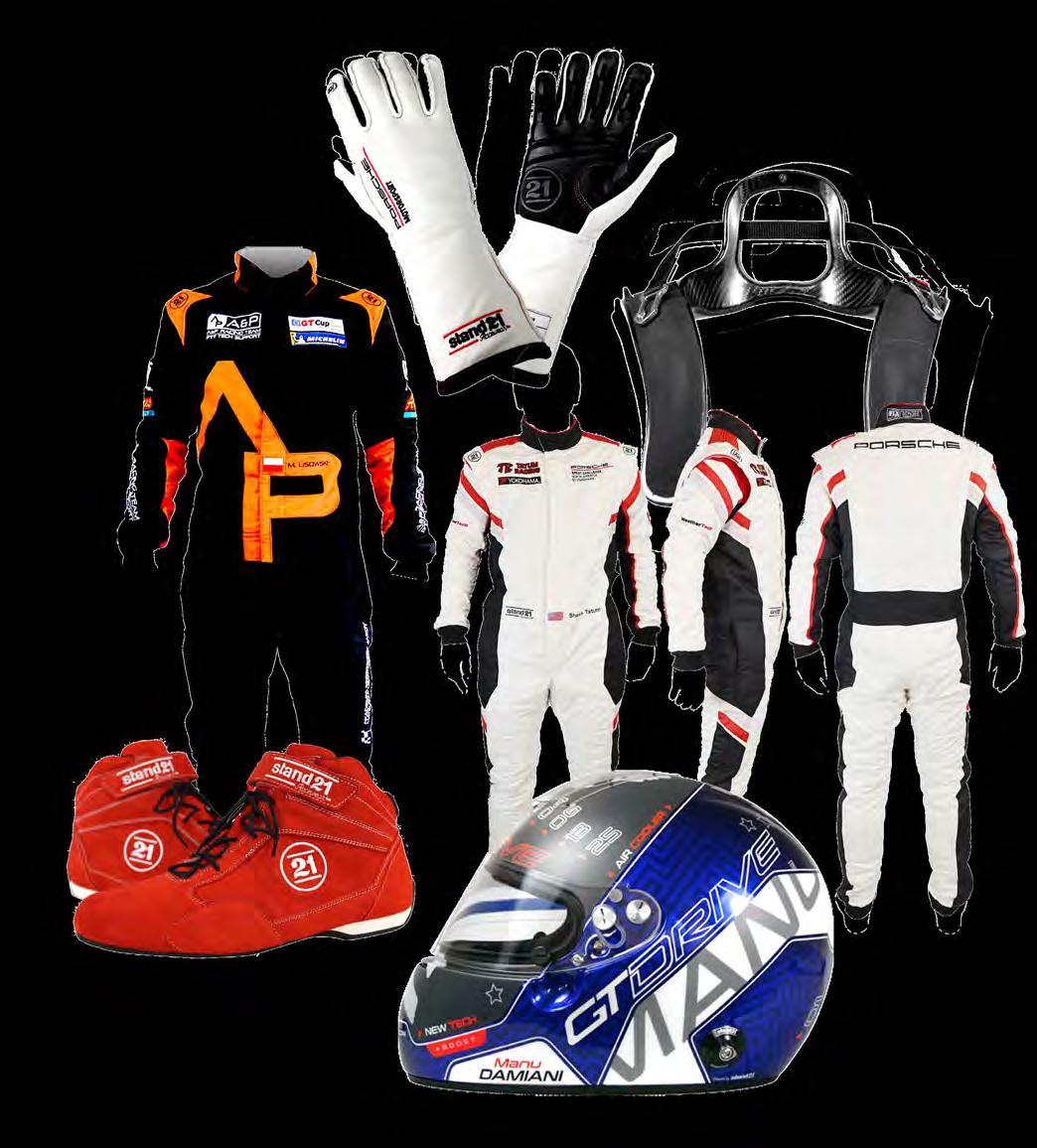 you can custom order many of their suits, gloves, shoes, and helmets to your fit. Drivers using Stand 21 products have earned some very prestigious victories including more than 10 Formula 1 World Championship titles, five Indianapolis 500 wins,15 Le Mans 24-hour wins, five IndyCar Championship titles, two NHRA Top-Fuel titles and several world championship titles in rallying and touring cars.