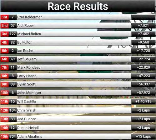 1st Ezra Kelderman 4th BJ Fulton 2nd AJ Roper 5th Ian Roche 3rd Michael Bolten 6th Jeff Shulem 1st Chris Walsh 4th BJ Fulton