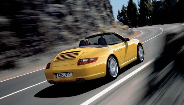 The 911 Carrera with a 239 KW (325 PS), 3.6 litre boxer engine, and the 911 Carrera S, powered by a newly developed 3.8 litre engine, which delivers 261 KW (355 PS). With torque of 400 Newton meters, the S model surges from zero to 100 kph in 4.8 seconds. The Carrera does this in exactly five seconds. Top speeds for the Carrera and Carrera S are 285 kph and 293 kph respectively.